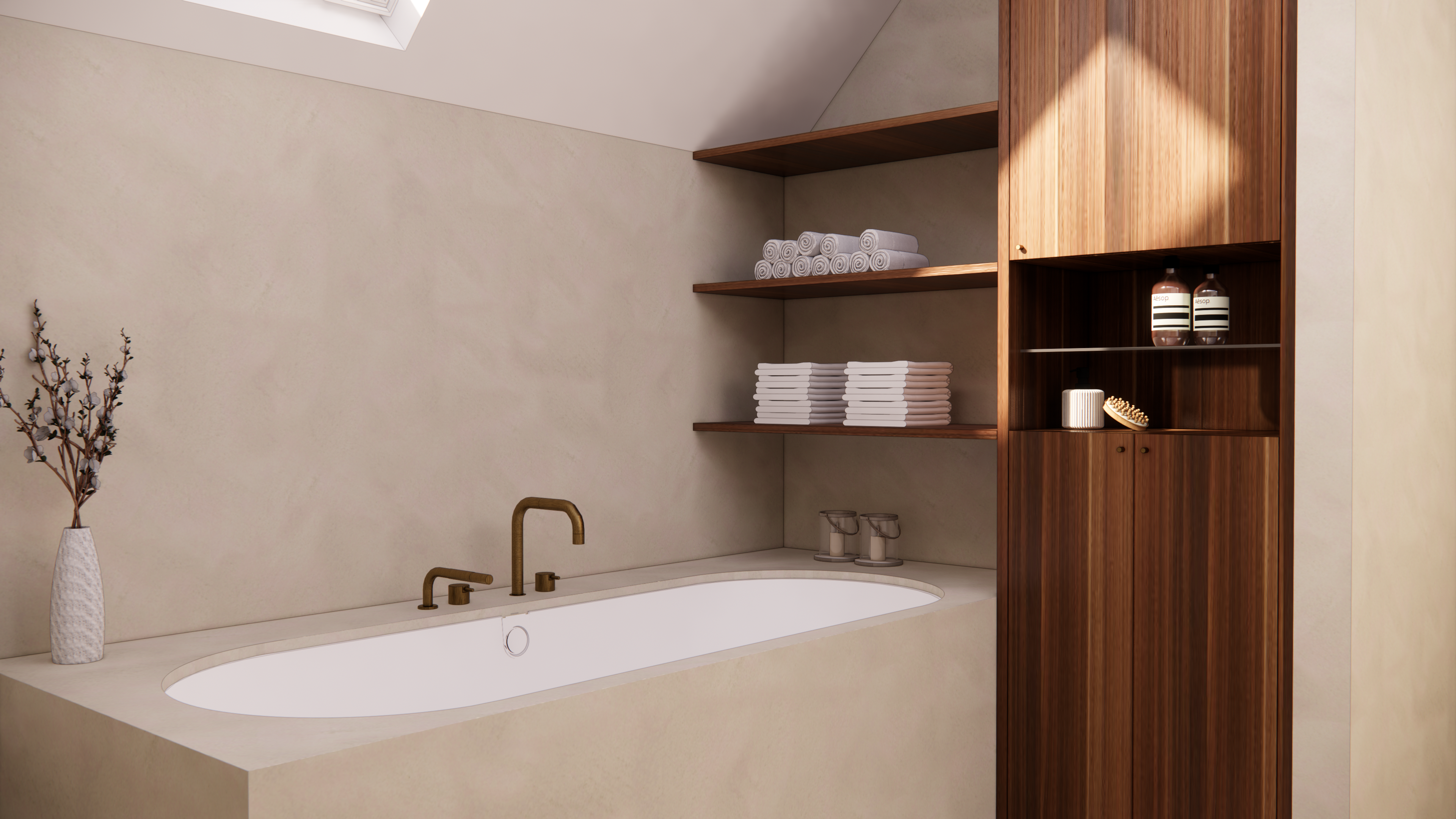 Beton cire - notenfineer - messing accenten
