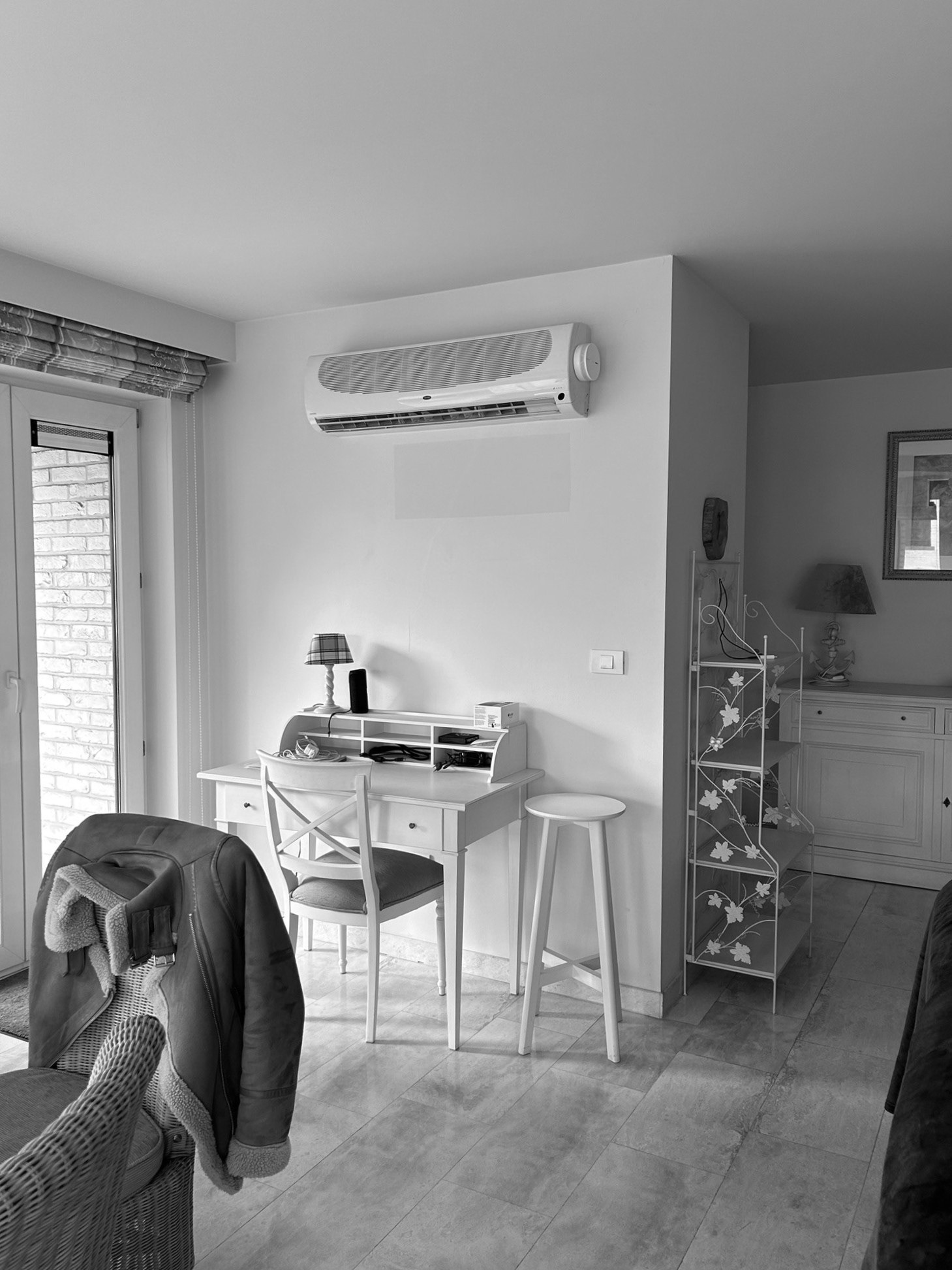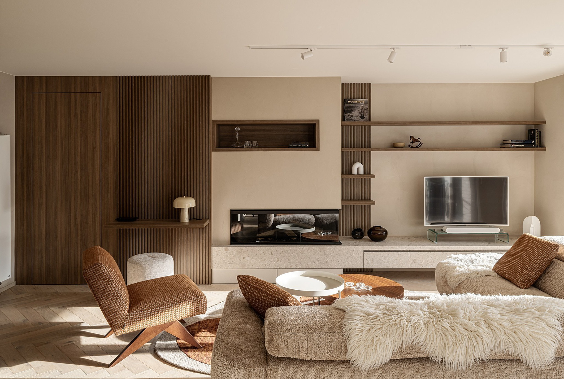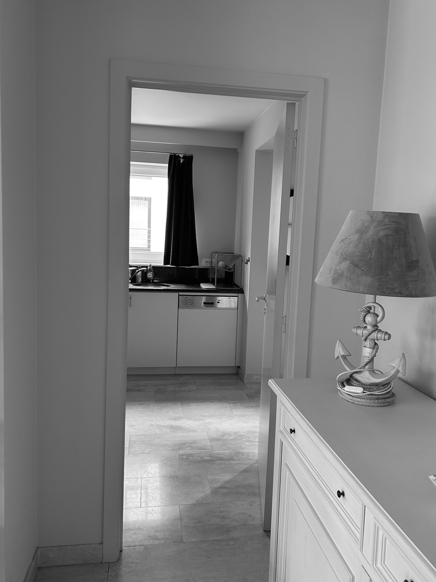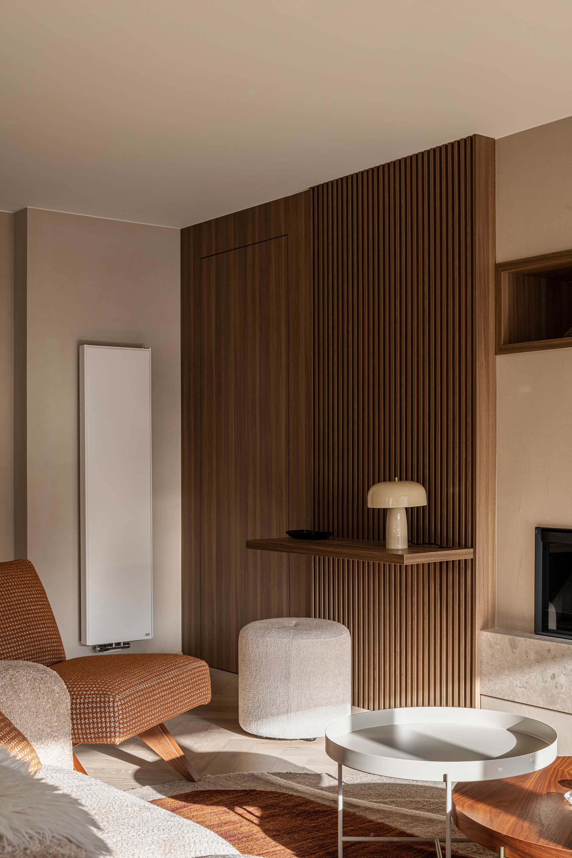Bij deze totaalrenovatie van een kustappartement stonden een aantal wensen van de bouwheer centraal: een open leefkeuken en een nieuwe, gezellige, elektrische haard die centraal en elegant in de leefruimte moest ingepast worden. Ook de badkamers, de hal en het gastentoilet hadden een grondige opfrissing nodig. Het resultaat is een stijlvol, lichtrijk en uitnodigend appartement waar het heerlijk vertoeven is.