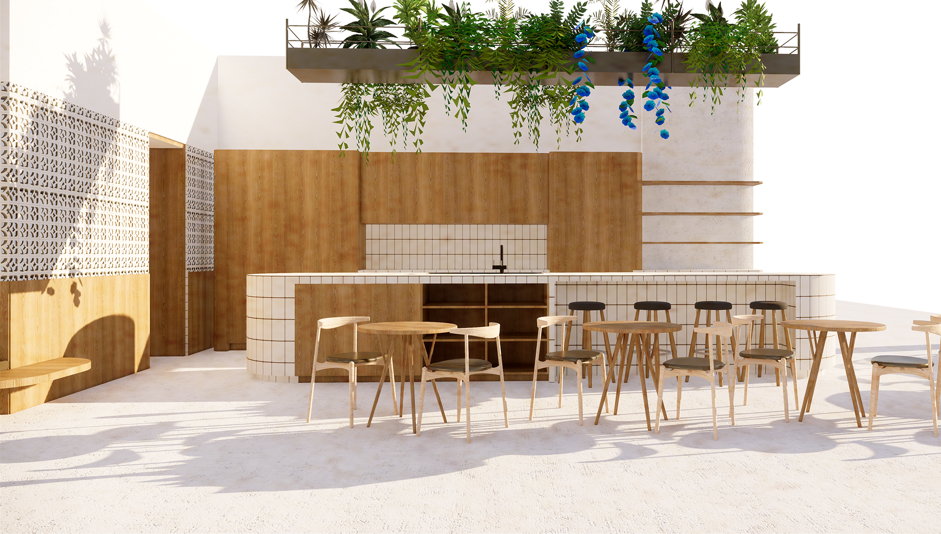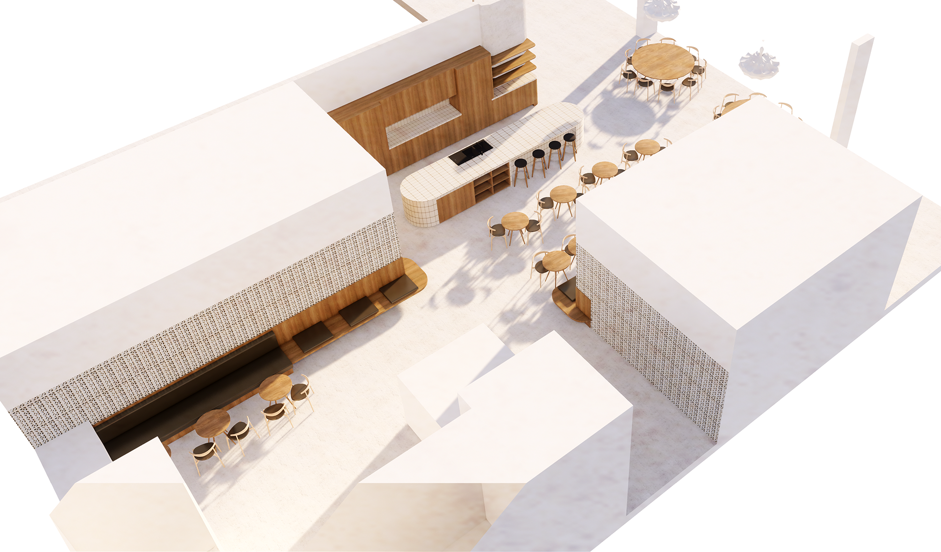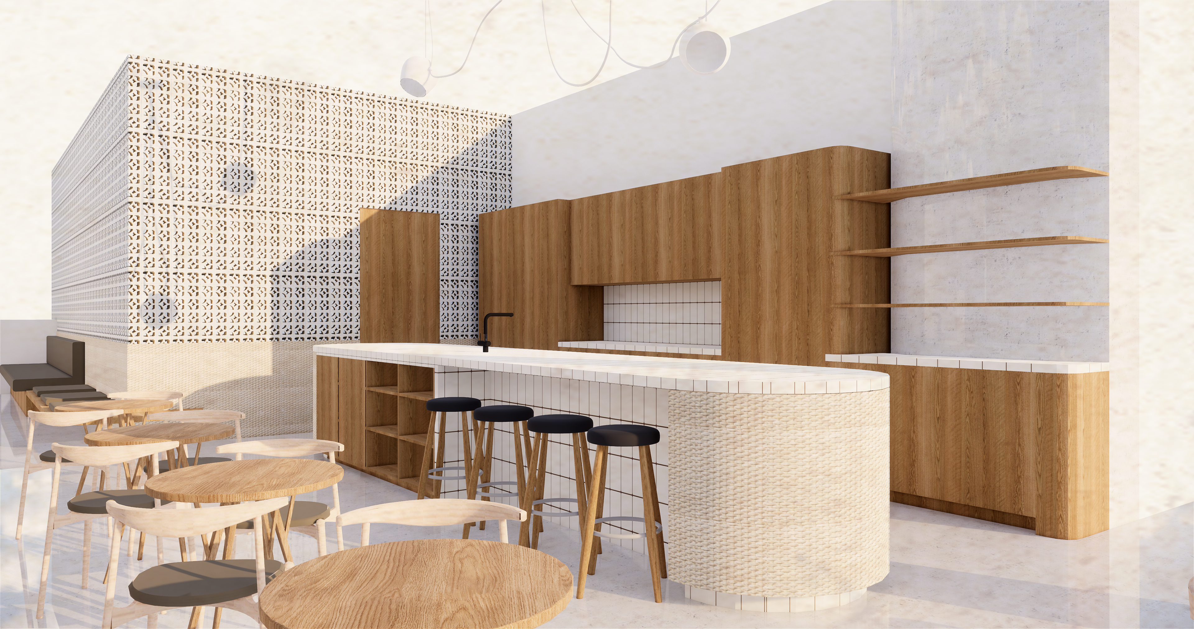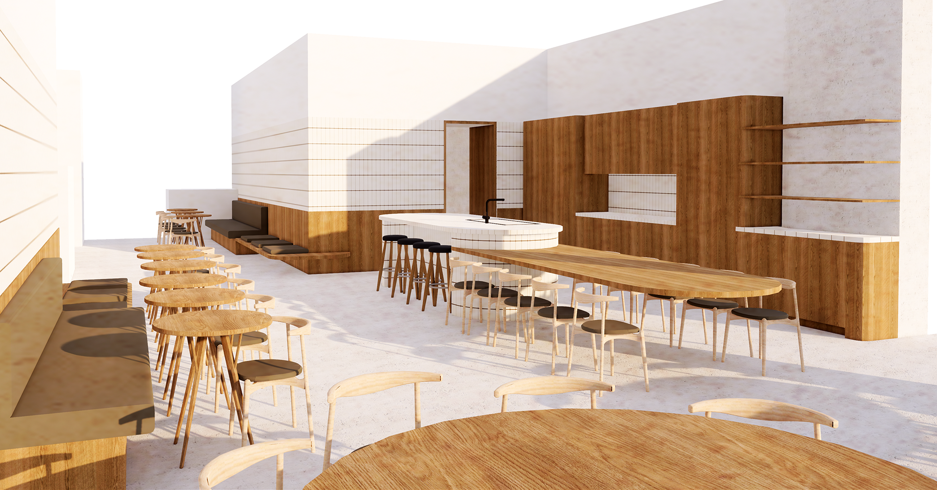 Concept & voorontwerp van een keuken en lunchruimte in een co-working office. In opdracht voor OYO architects.