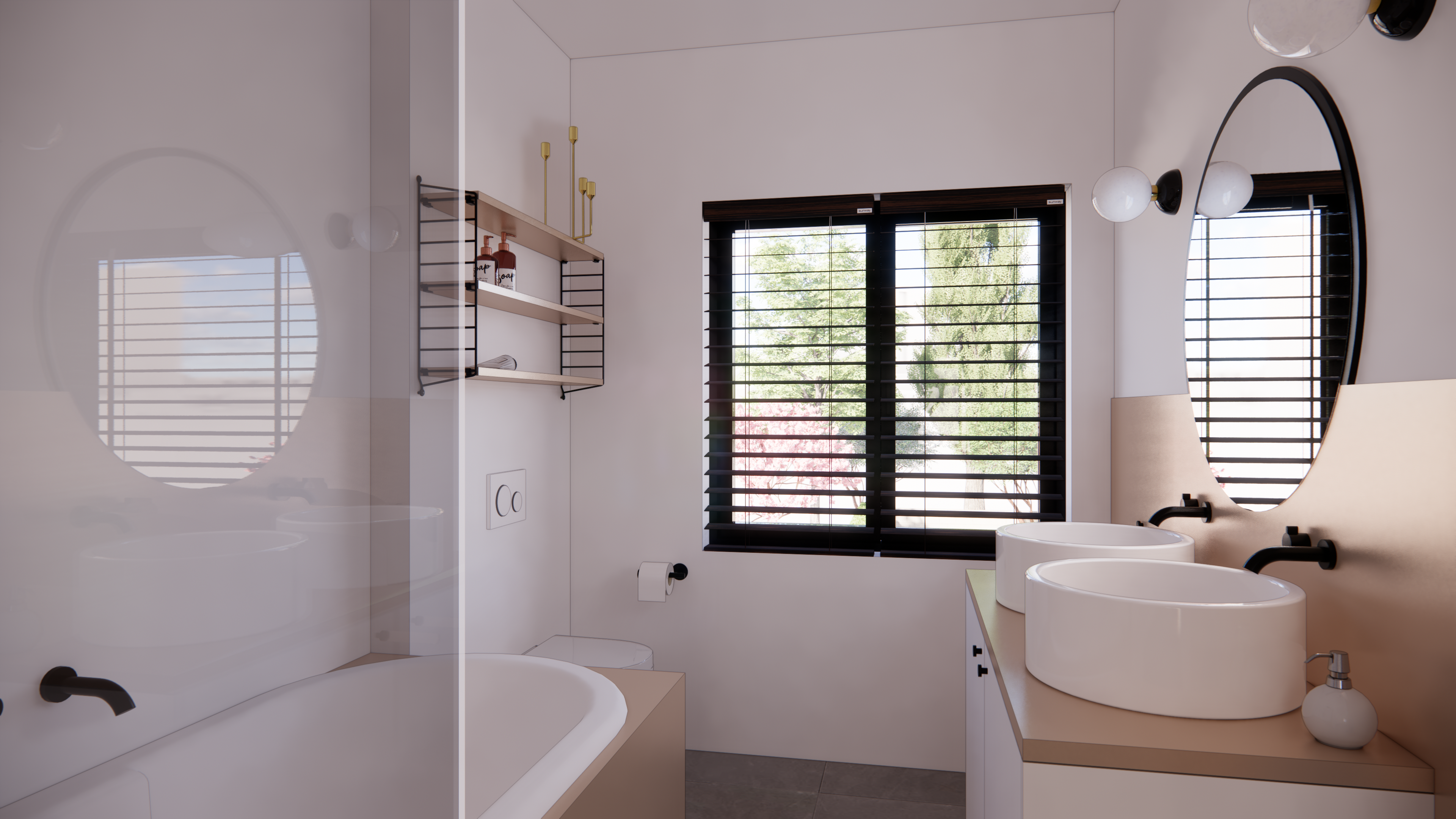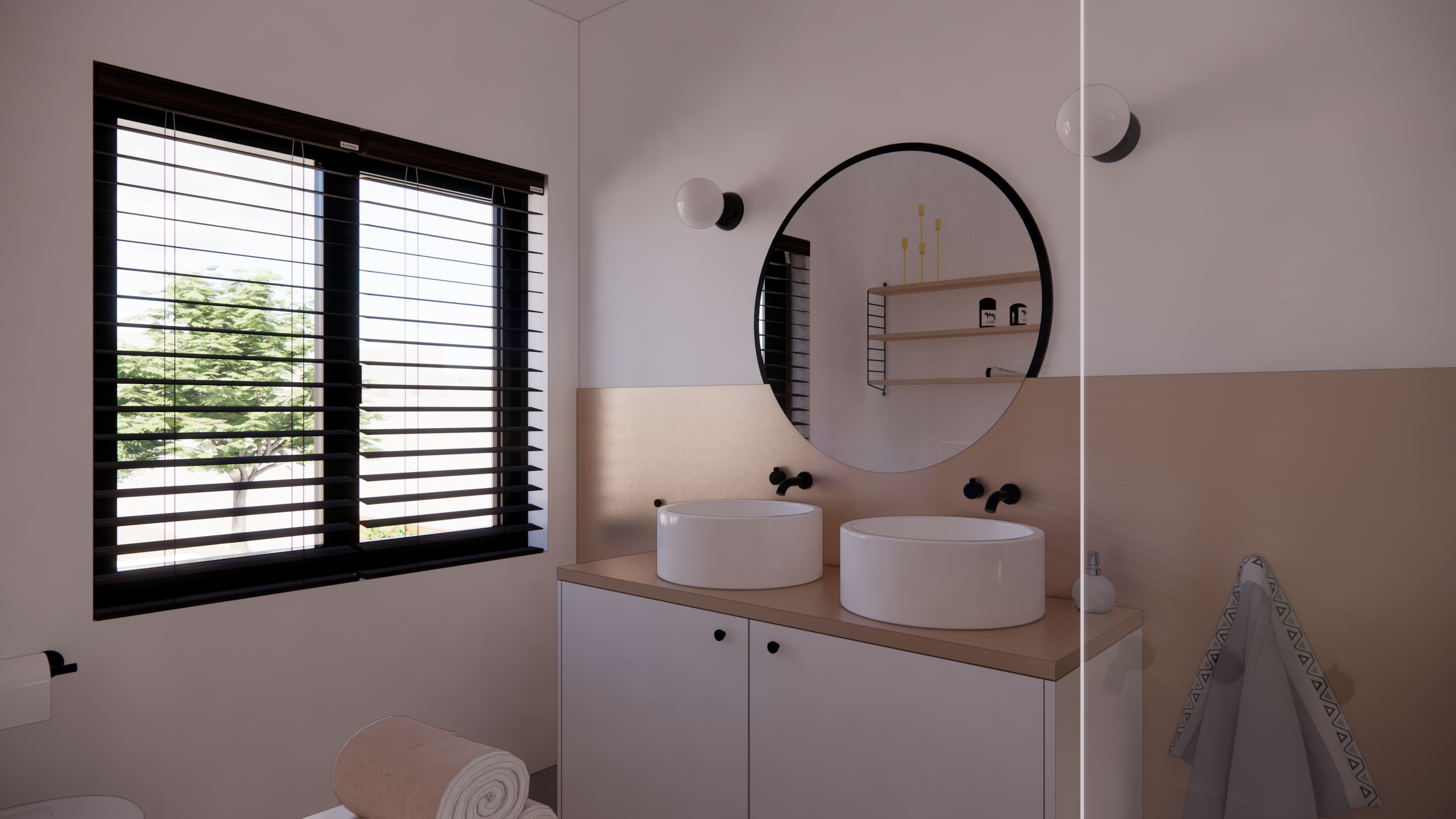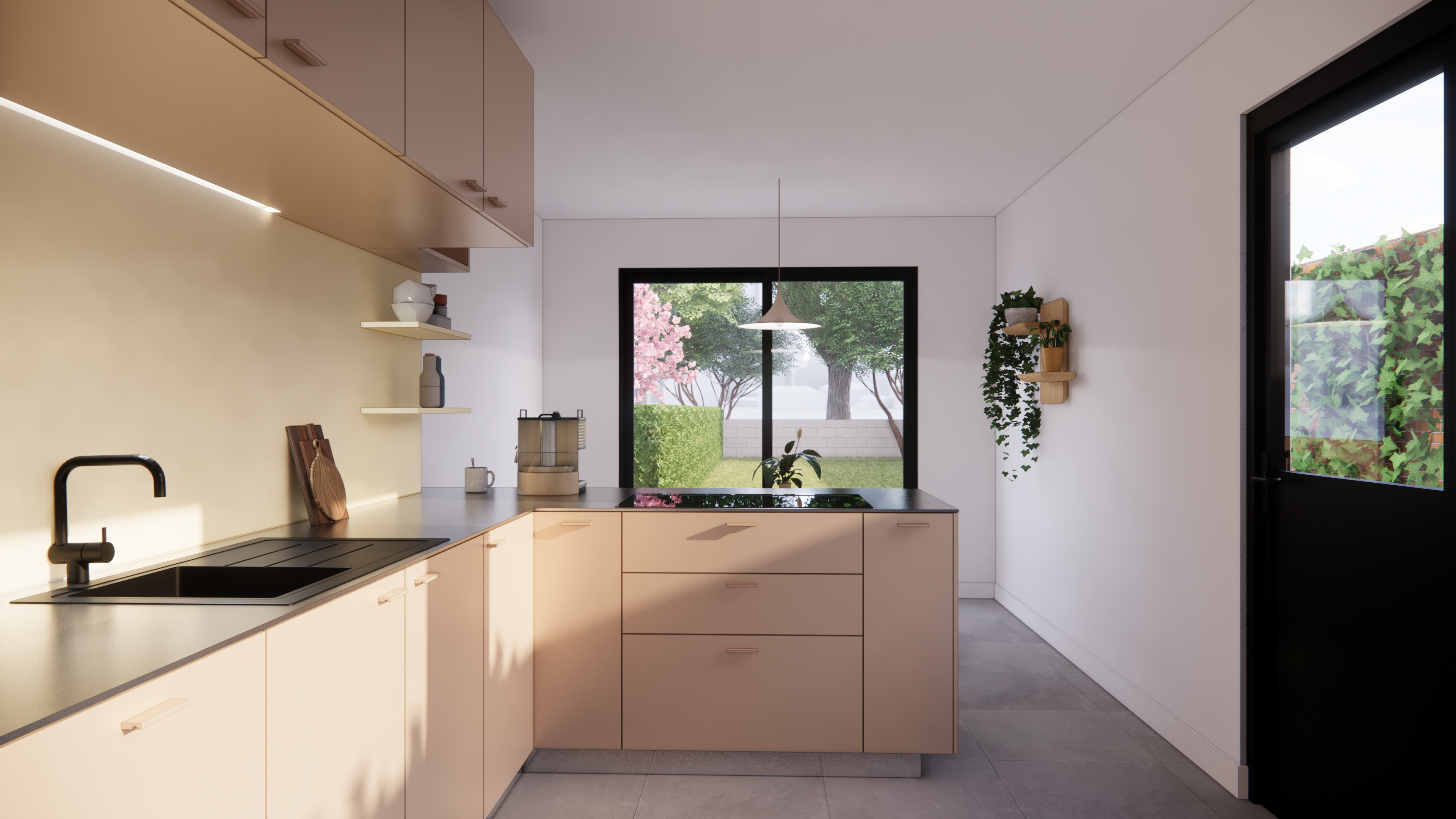 Ontwerp voor een leefkeuken en compacte badkamer. Gezinswoning te koop in D.