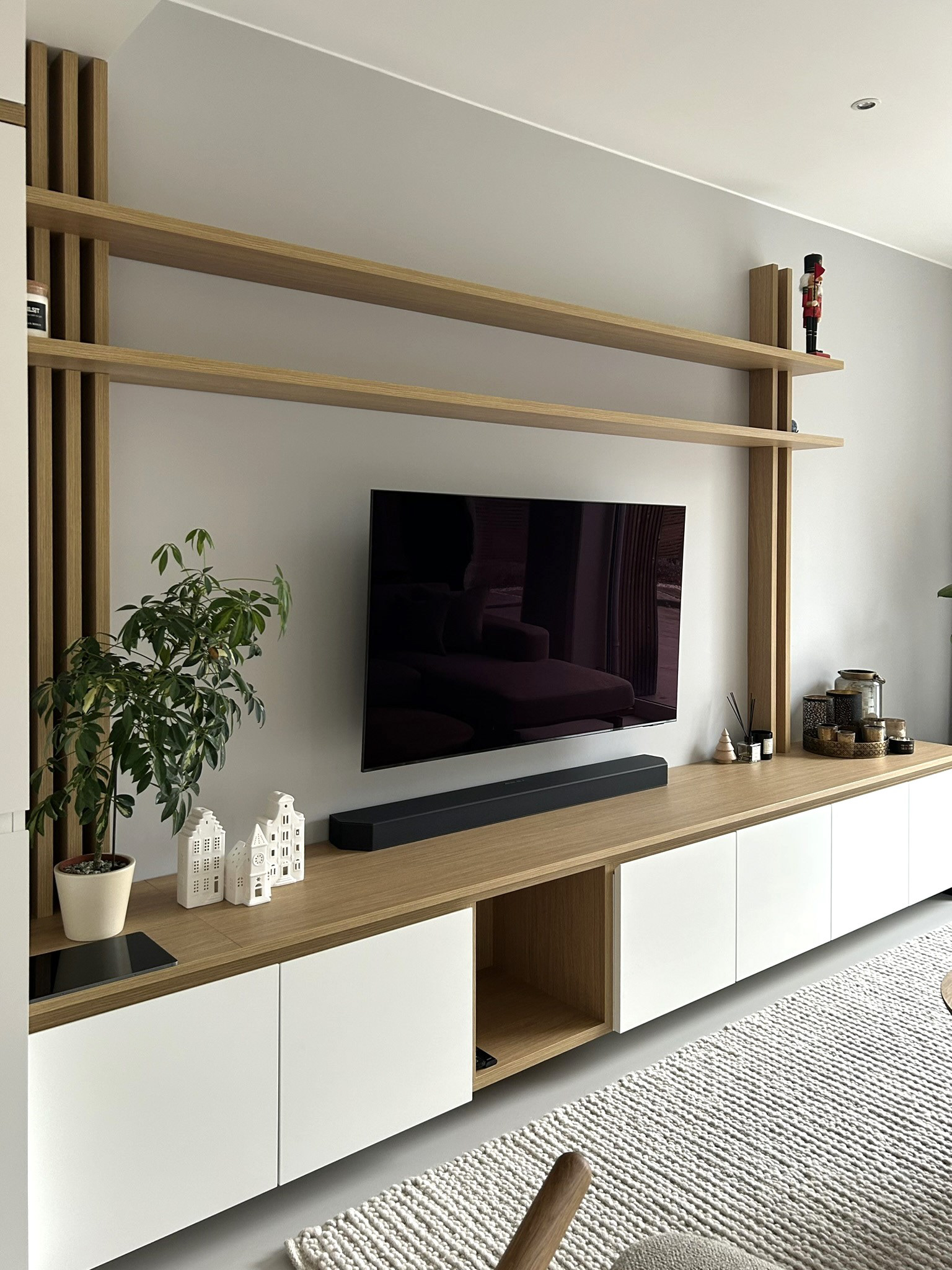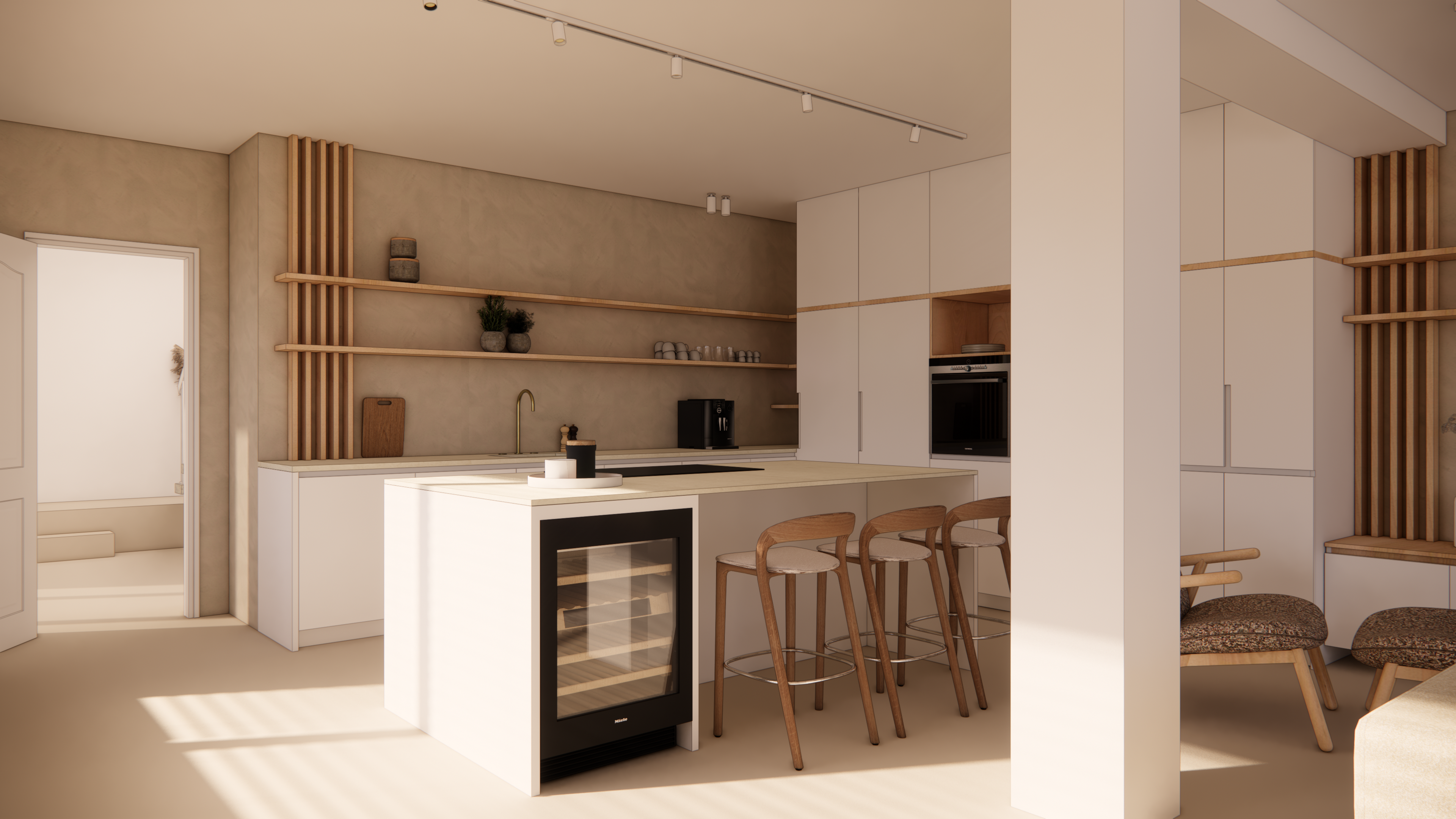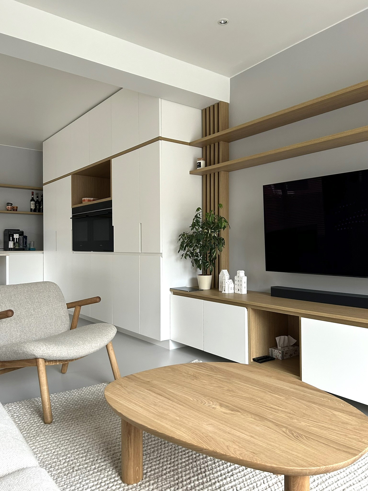Renovatie van een benedenverdieping met een nieuwe, ruime keuken en maatwerk meubilair.